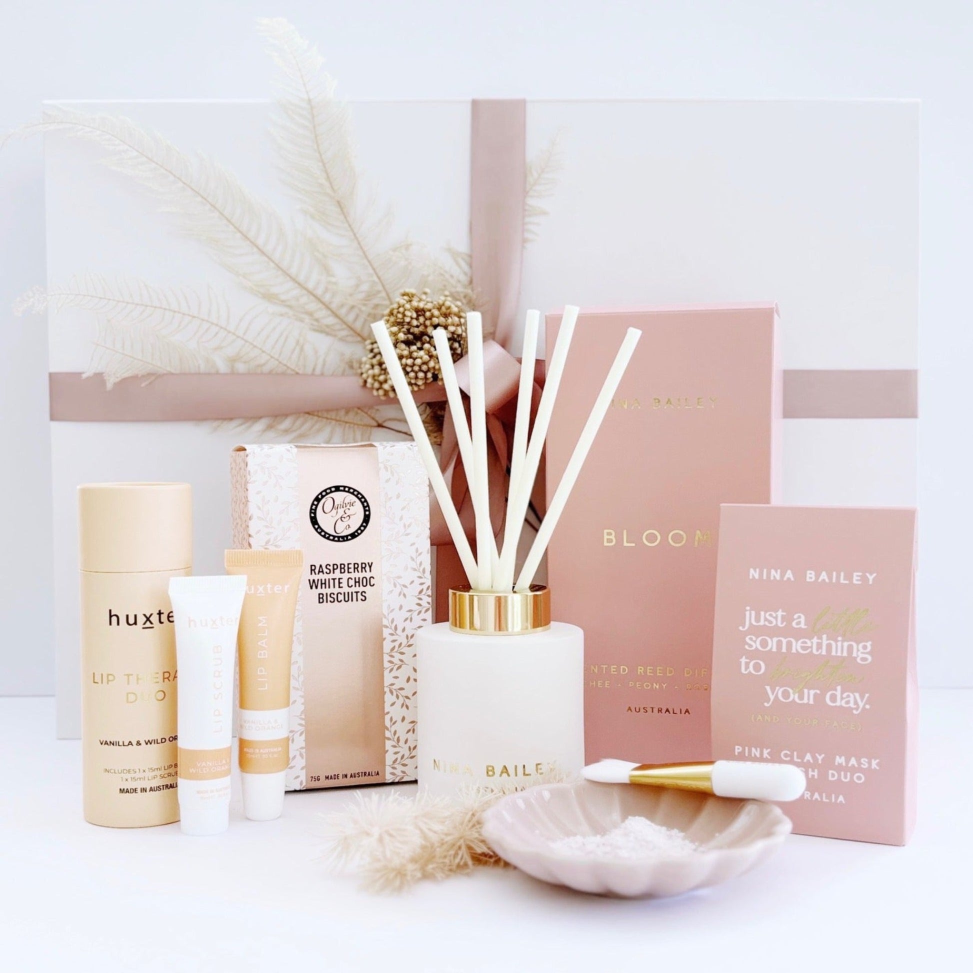 Gift box and card ~ delicately packed in a keepsake white magnetic box wrapped with satin ribbon and dried floral arrangement.