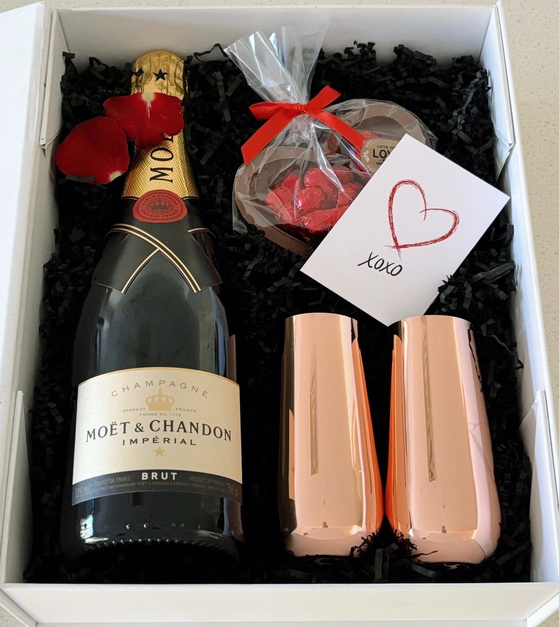 Gift box and Valentine's card ~ delicately packed in a keepsake white or black magnetic box wrapped with ribbon and dried floral arrangement.